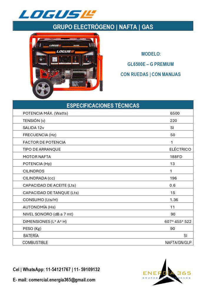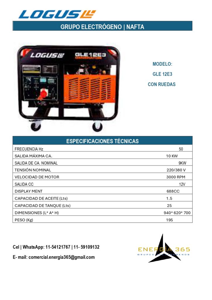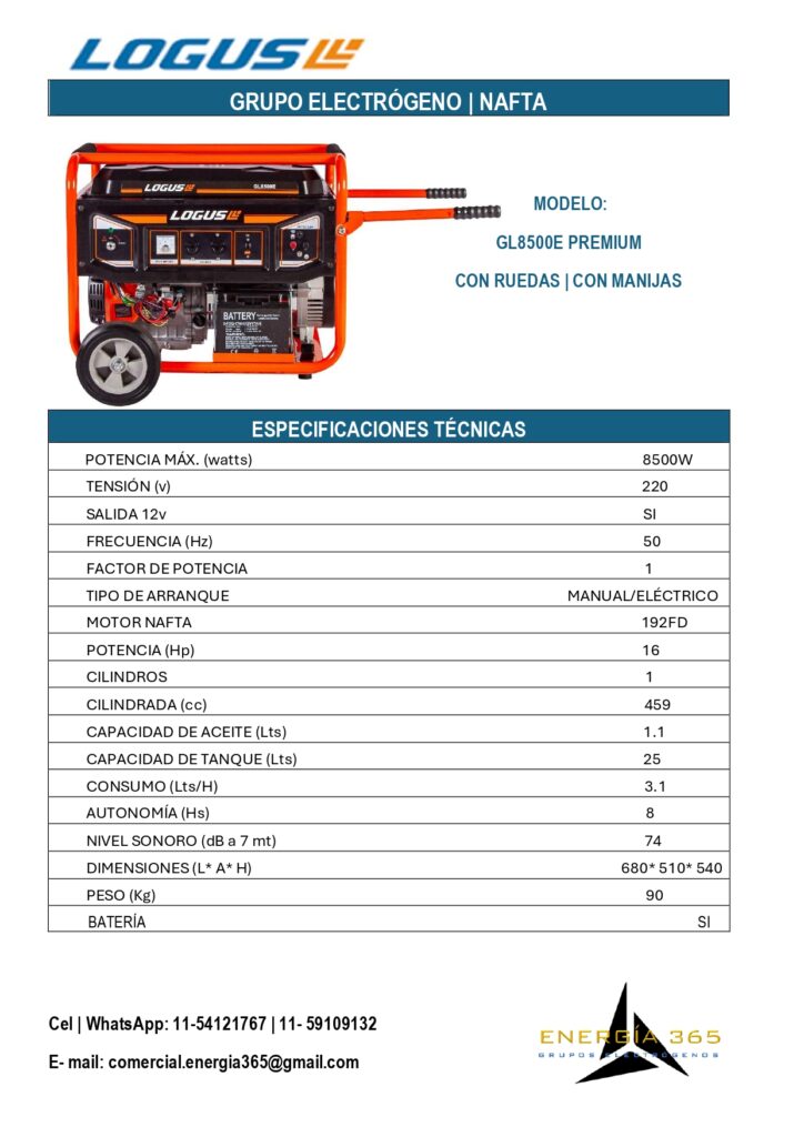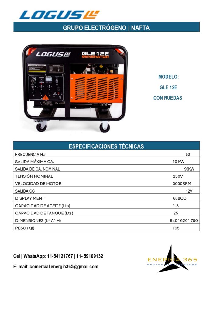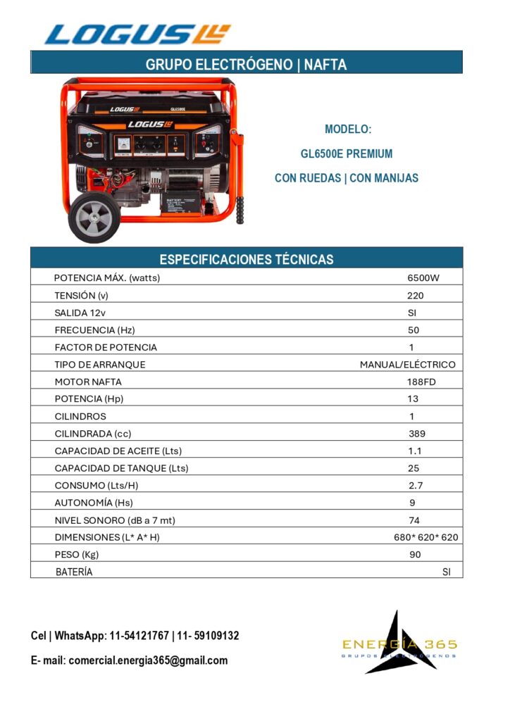 ¿ Quieres asegurarte de que tu hogar tenga energía en cualquier momento?Nuestros grupos electrógenos son la solución perfecta para ti. con una potencia de hasta 10 KVA, puedes mantener tus necesidades básicas cubiertas. Para consultas por nuestros productos presiona cualquier ficha y te dirigirá a nuestro WathsApp. LÍNEA KIPOR LÍNEA LOGUS NAFTA LÍNEA NAFTA/ GAS + PRODUCTOS