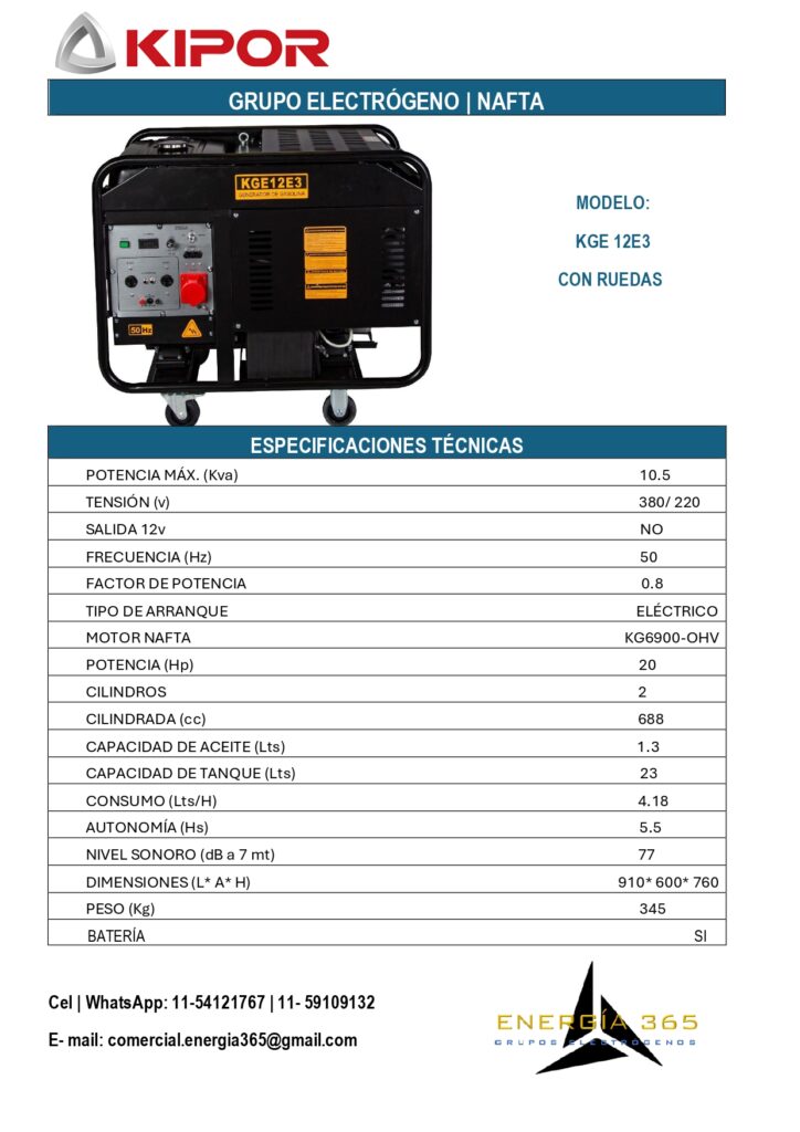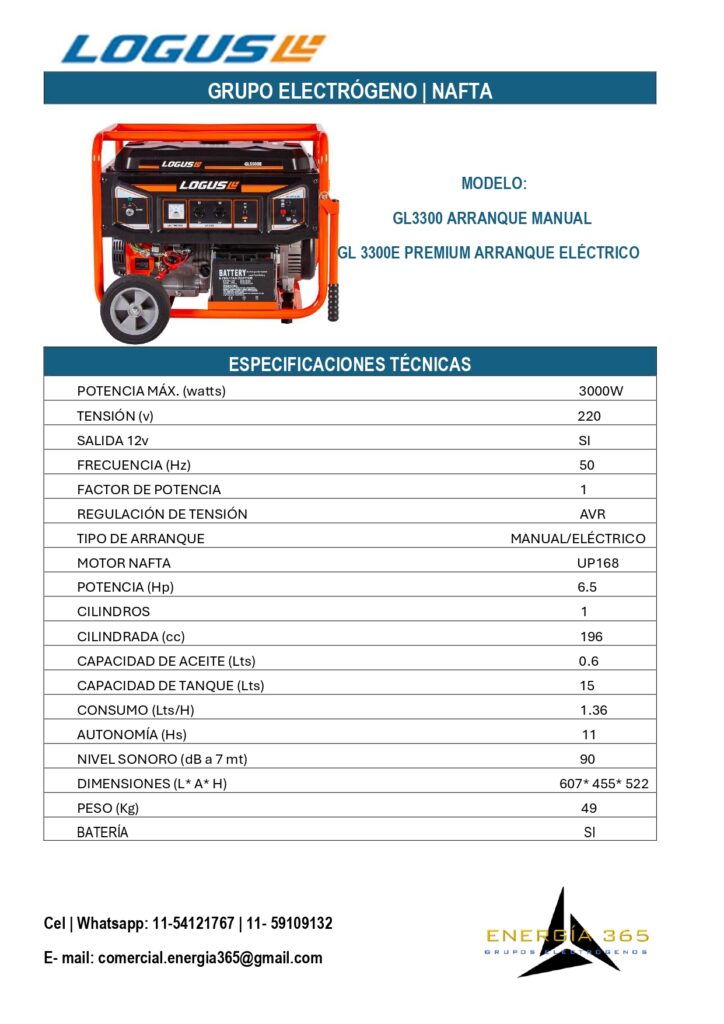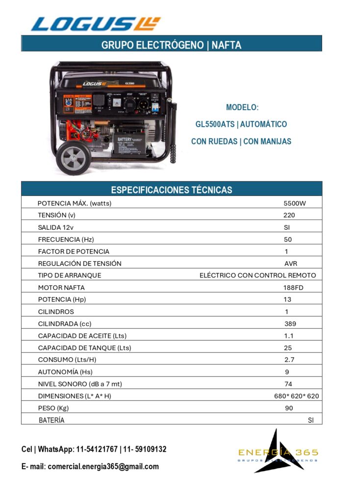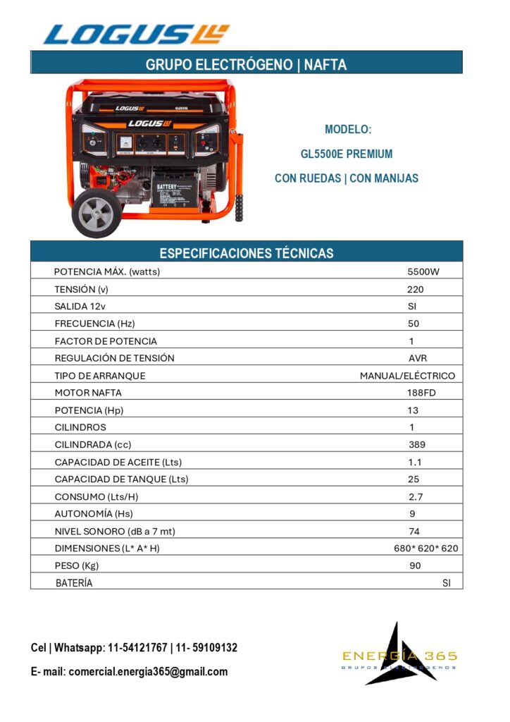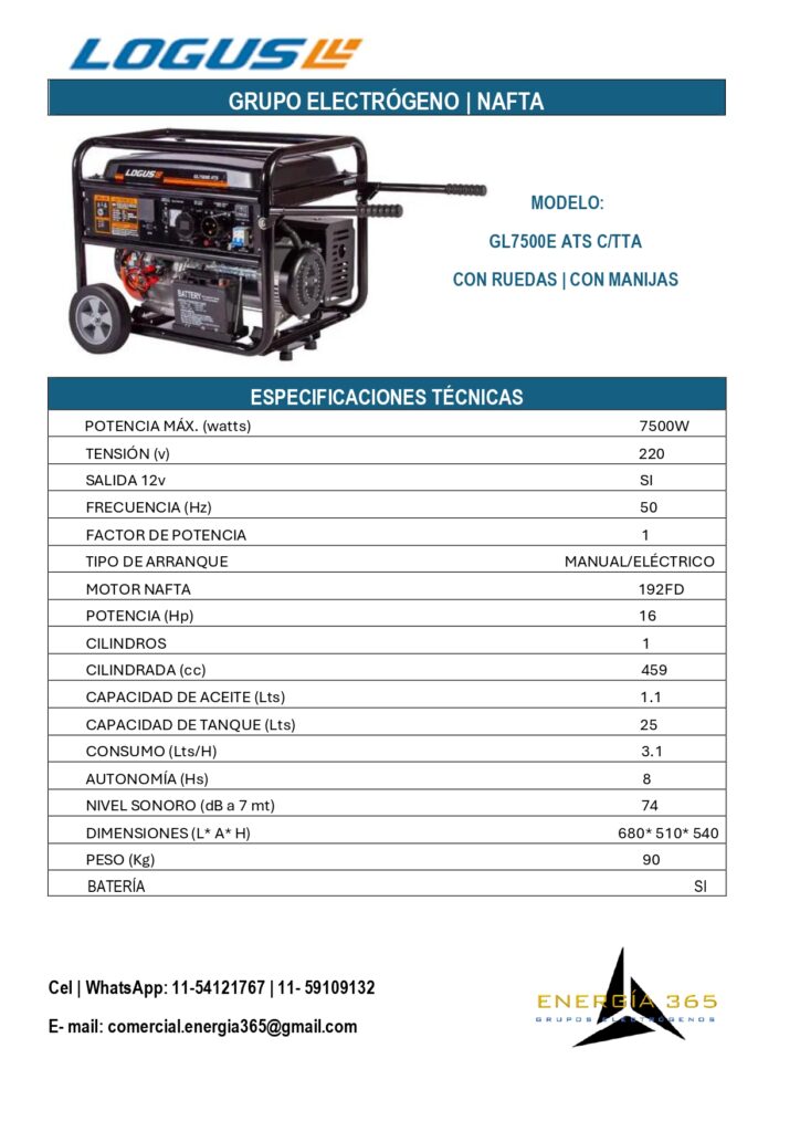 ¿ Quieres asegurarte de que tu hogar tenga energía en cualquier momento?Nuestros grupos electrógenos son la solución perfecta para ti. con una potencia de hasta 10 KVA, puedes mantener tus necesidades básicas cubiertas. Para consultas por nuestros productos presiona cualquier ficha y te dirigirá a nuestro WathsApp. LÍNEA KIPOR LÍNEA LOGUS NAFTA LÍNEA NAFTA/ GAS + PRODUCTOS